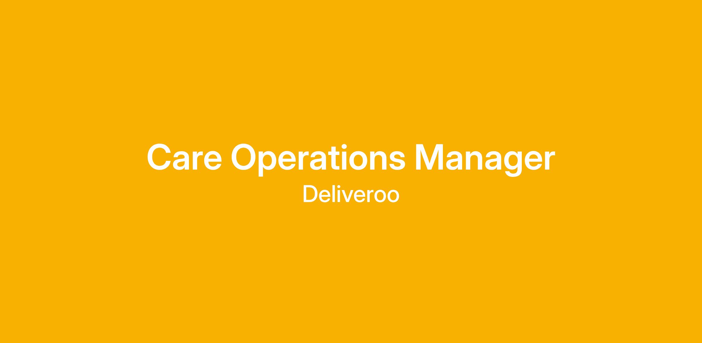 Make Care a true differentiator at Deliveroo, ensuring best in class customer satisfaction for all three sides of the marketplace