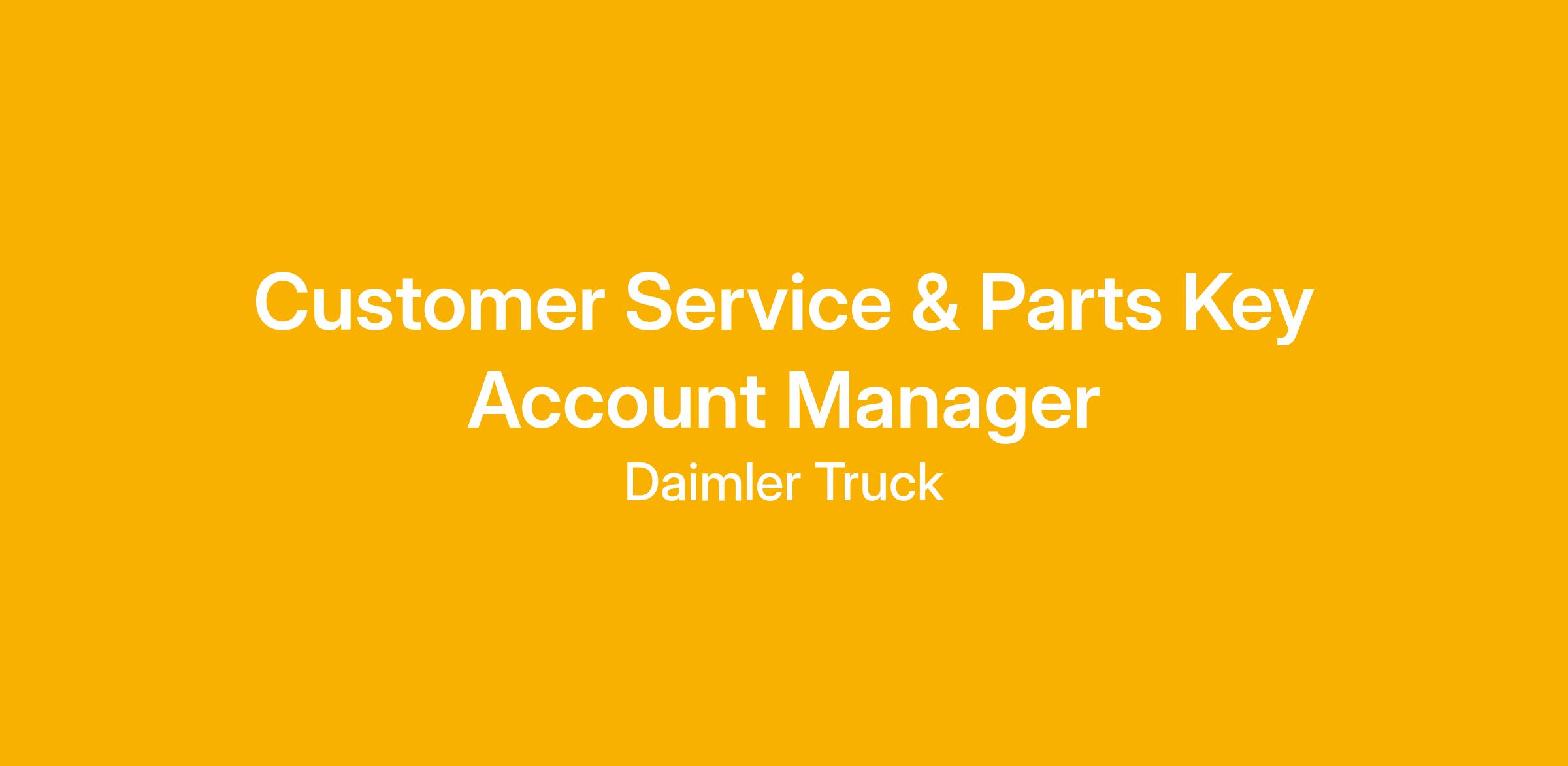 Customer Service & Parts Key Account Manager