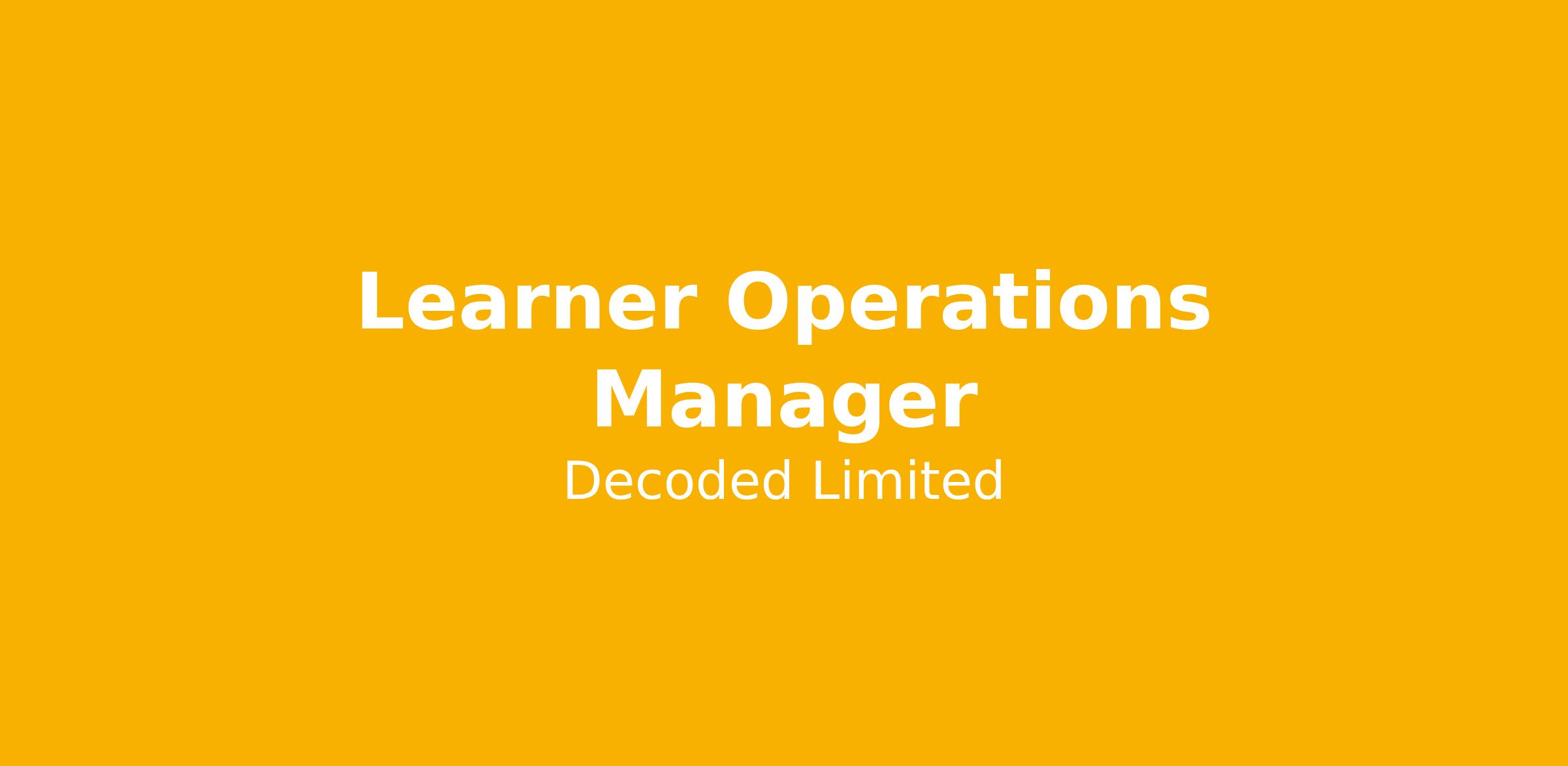 Contribute to shaping and growing the learner operations function as Decoded continues to scale its delivery.