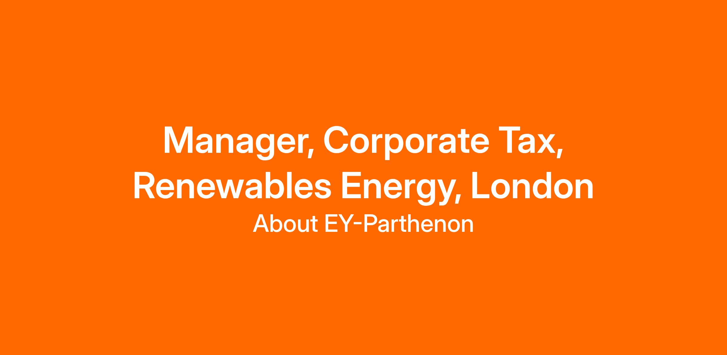 Manager, Corporate Tax, Renewables Energy, London