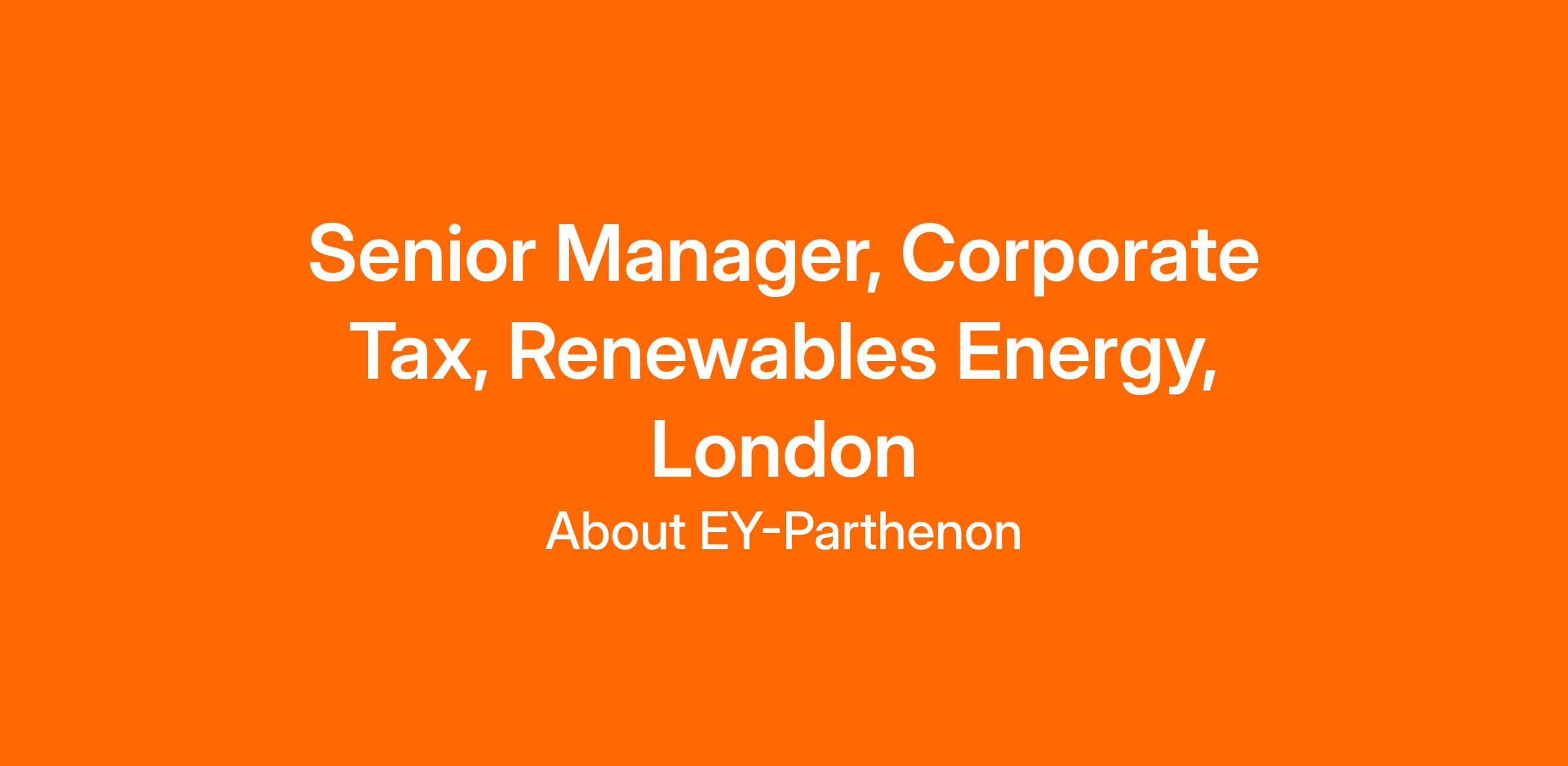 Senior Manager, Corporate Tax, Renewables Energy, London